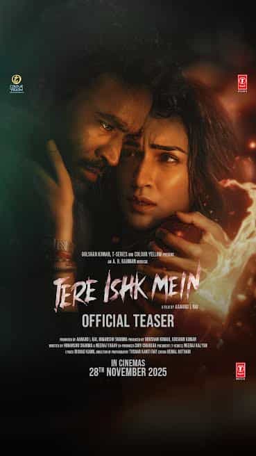 गुलशन कुमार, टी-सीरीज़ और कलर येल्लो प्रस्तुत कर रहे हैं ‘तेरे इश्क़ में’ । फिल्म को आनंद एल राय और हिमांशु शर्मा, भूषण कुमार और कृष्ण कुमार ने निर्मित किया है। फिल्म का निर्देशन आनंद एल राय ने किया है और इसे हिमांशु शर्मा व नीरज यादव ने लिखा है। ए. आर. रहमान के संगीत और इरशाद कामिल के गीतों से सजी इस फिल्म में मुख्य भूमिकाओं में हैं धनुष और कृति सेनन। ‘तेरे इश्क़ में’ 28 नवम्बर, 2025 को दुनियाभर में हिंदी और तमिल भाषाओं में रिलीज़ होगी।